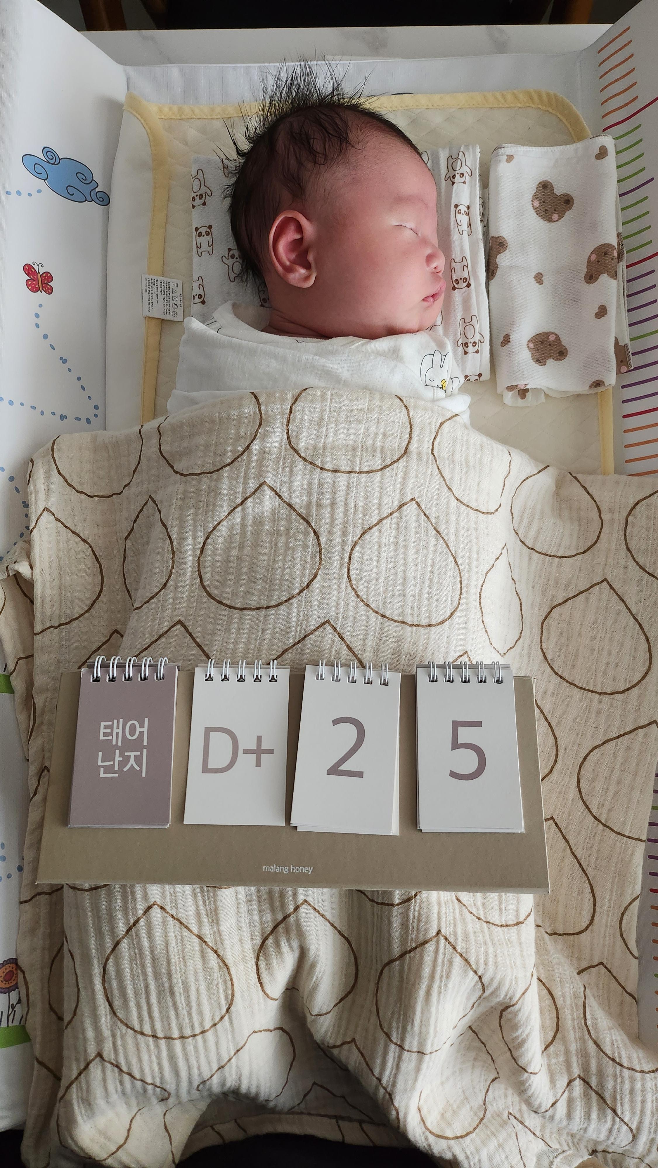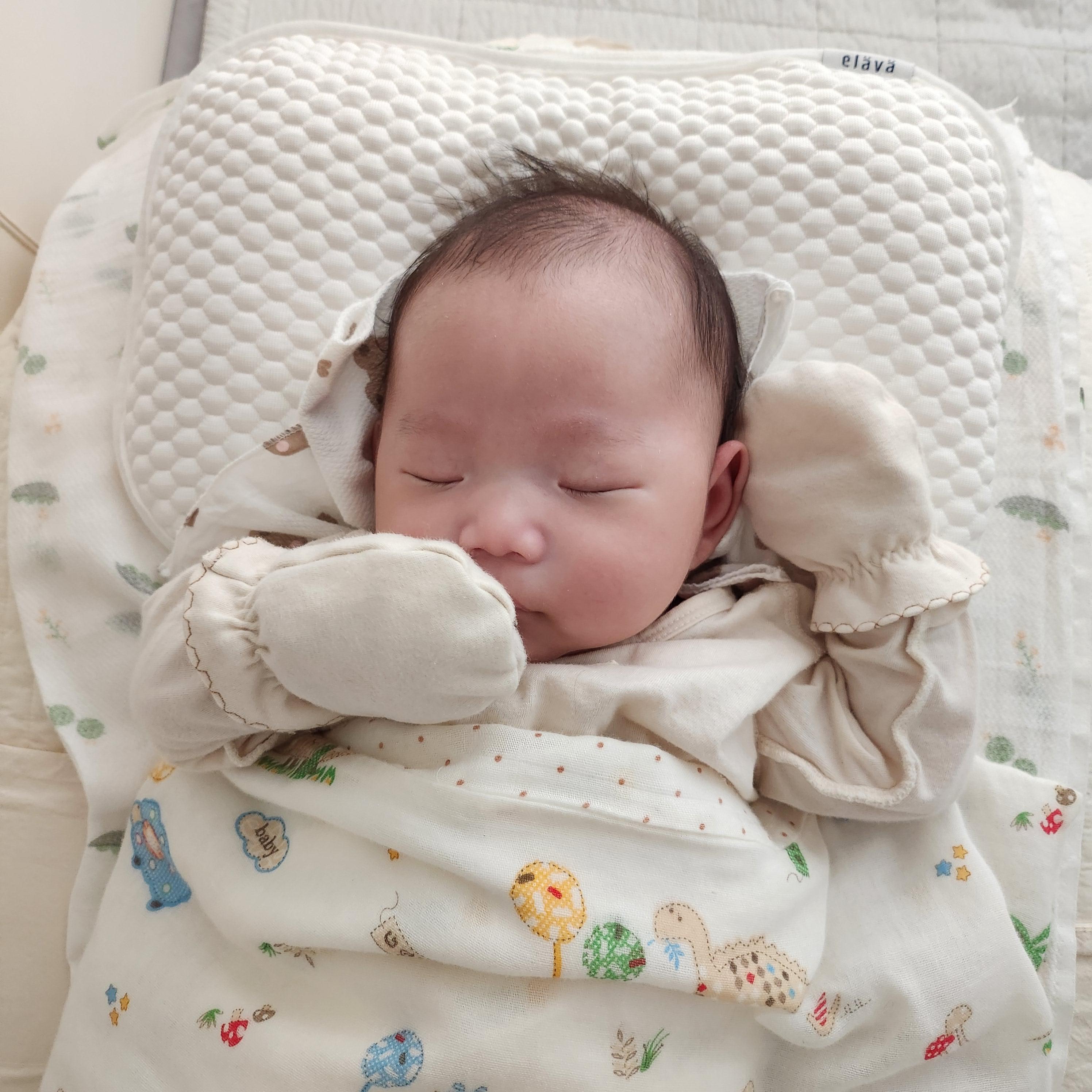 신생아 때는 따로 베개가 없어도 돼서 베개 대신 천기저귀 접어서 베개 대신으로 사용했습니다.
