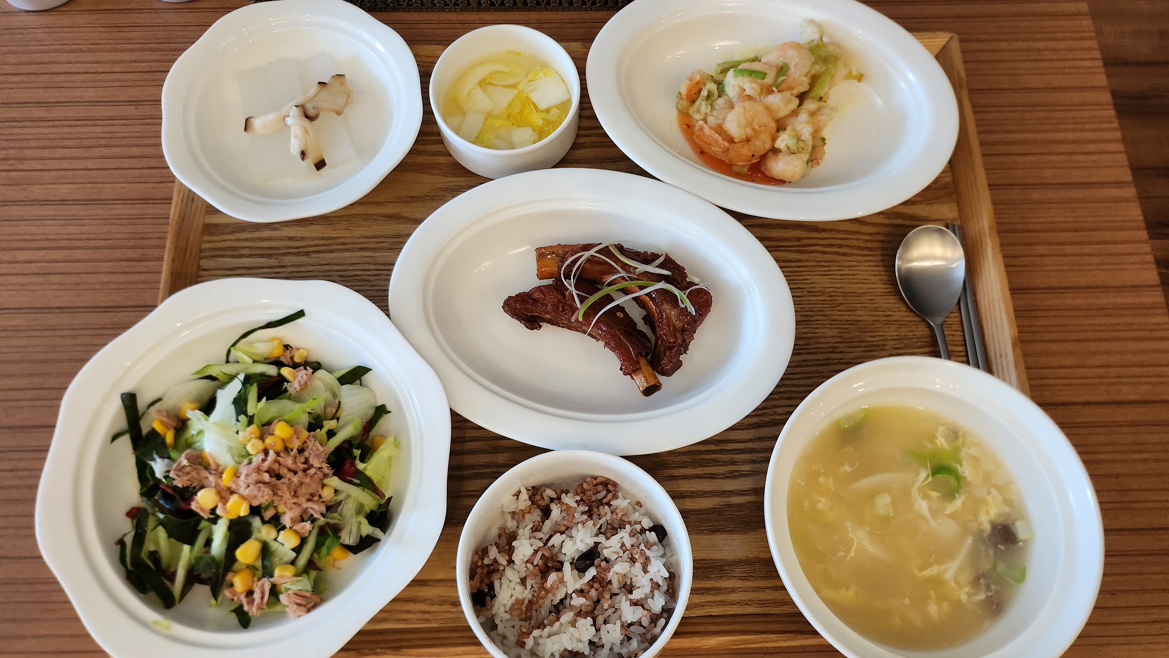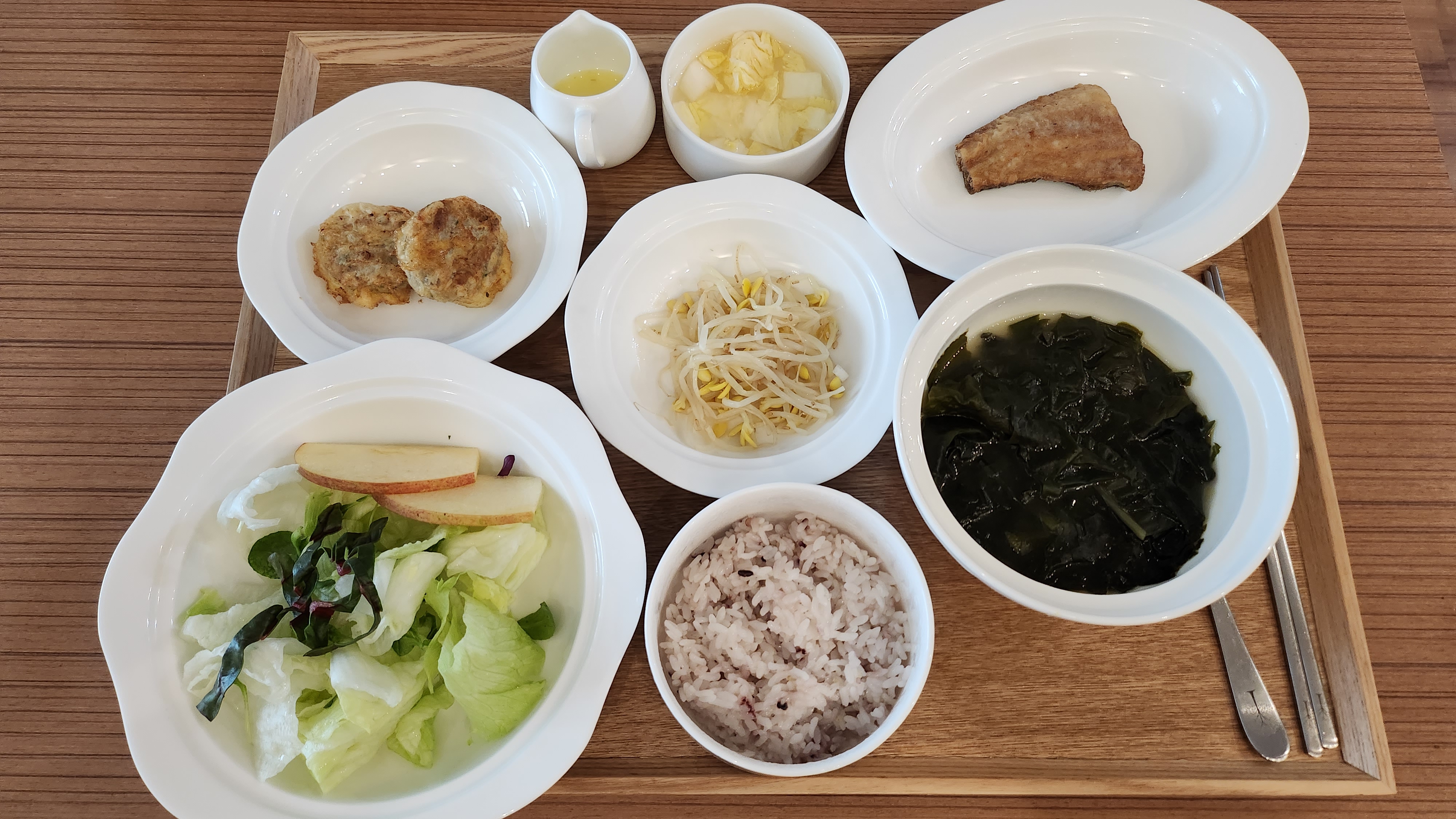 아침, 간식, 점심, 간식, 저녁, 간식 이렇게 주는데 하루종일 먹는 느낌이라 저는 밥은 거의 남기고 메인요리나 샐러드만 다 먹었던 것 같습니다.