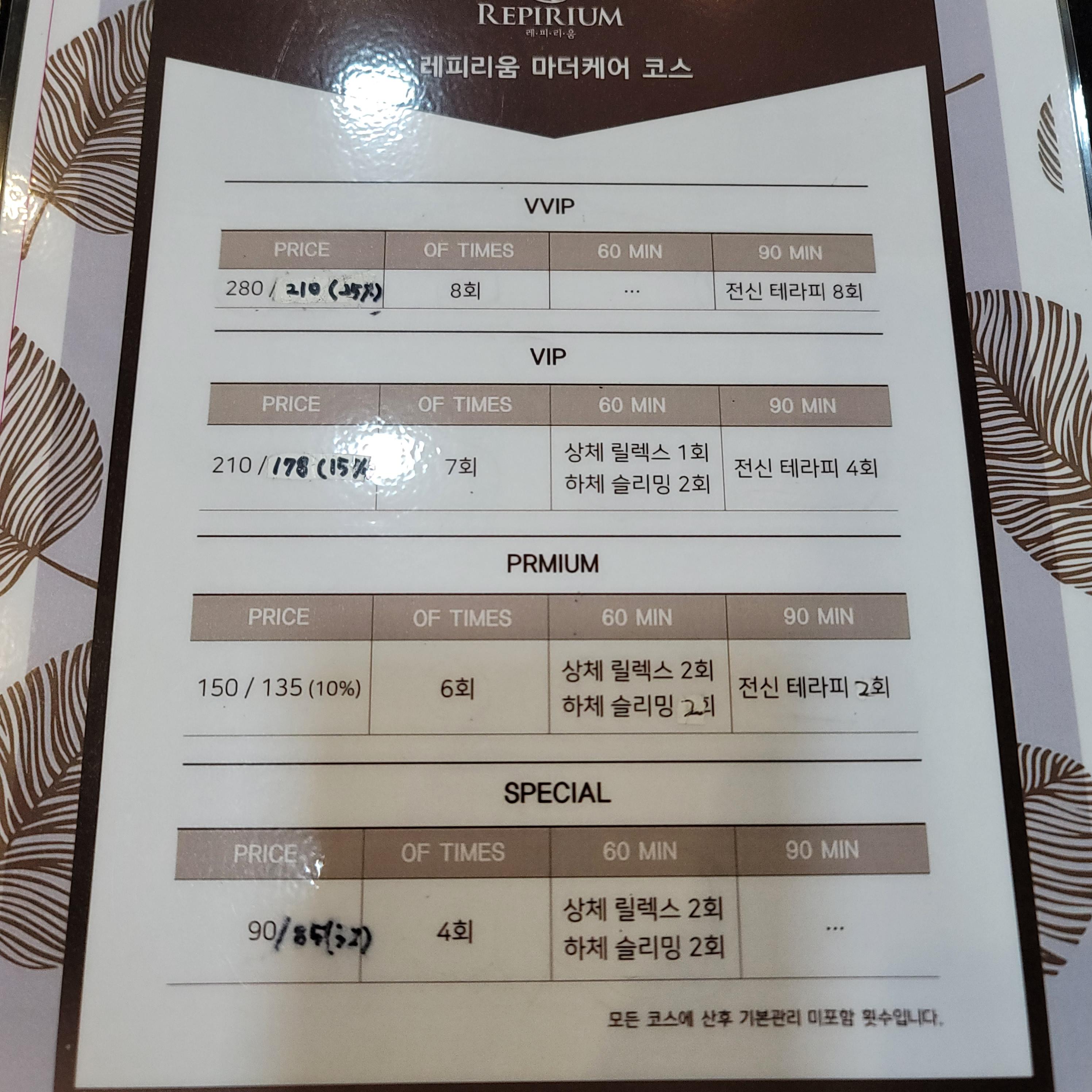 마사지 가격 및 후기