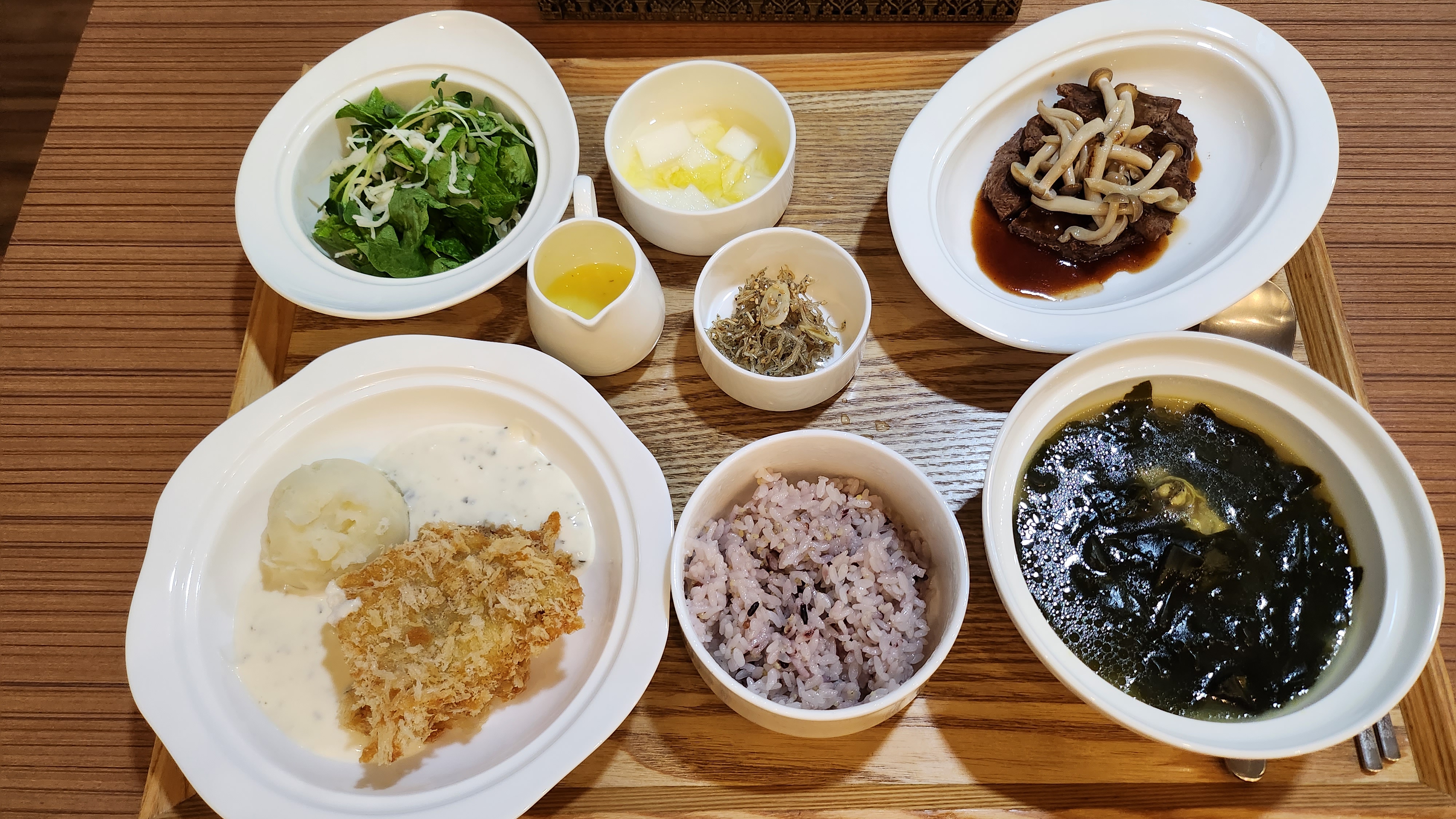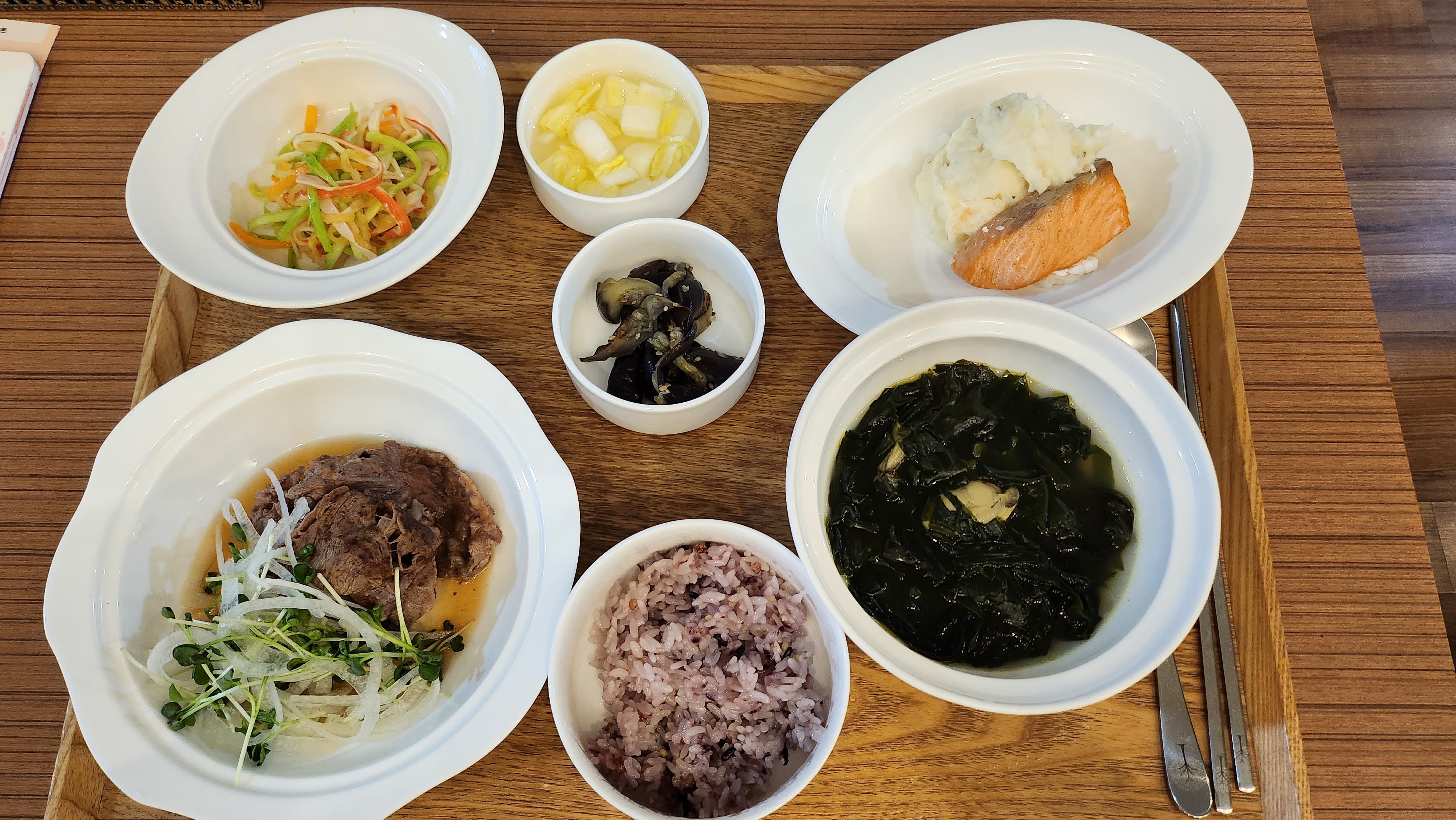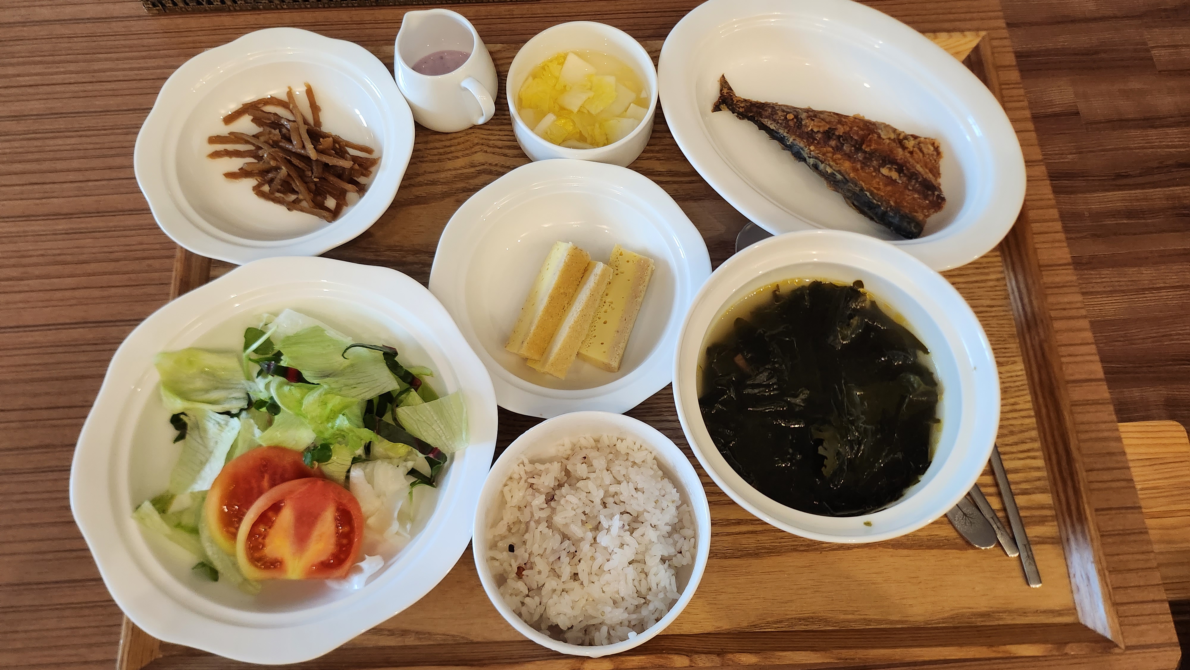 아침, 간식, 점심, 간식, 저녁, 간식 이렇게 주는데 하루종일 먹는 느낌이라 저는 밥은 거의 남기고 메인요리나 샐러드만 다 먹었던 것 같습니다.