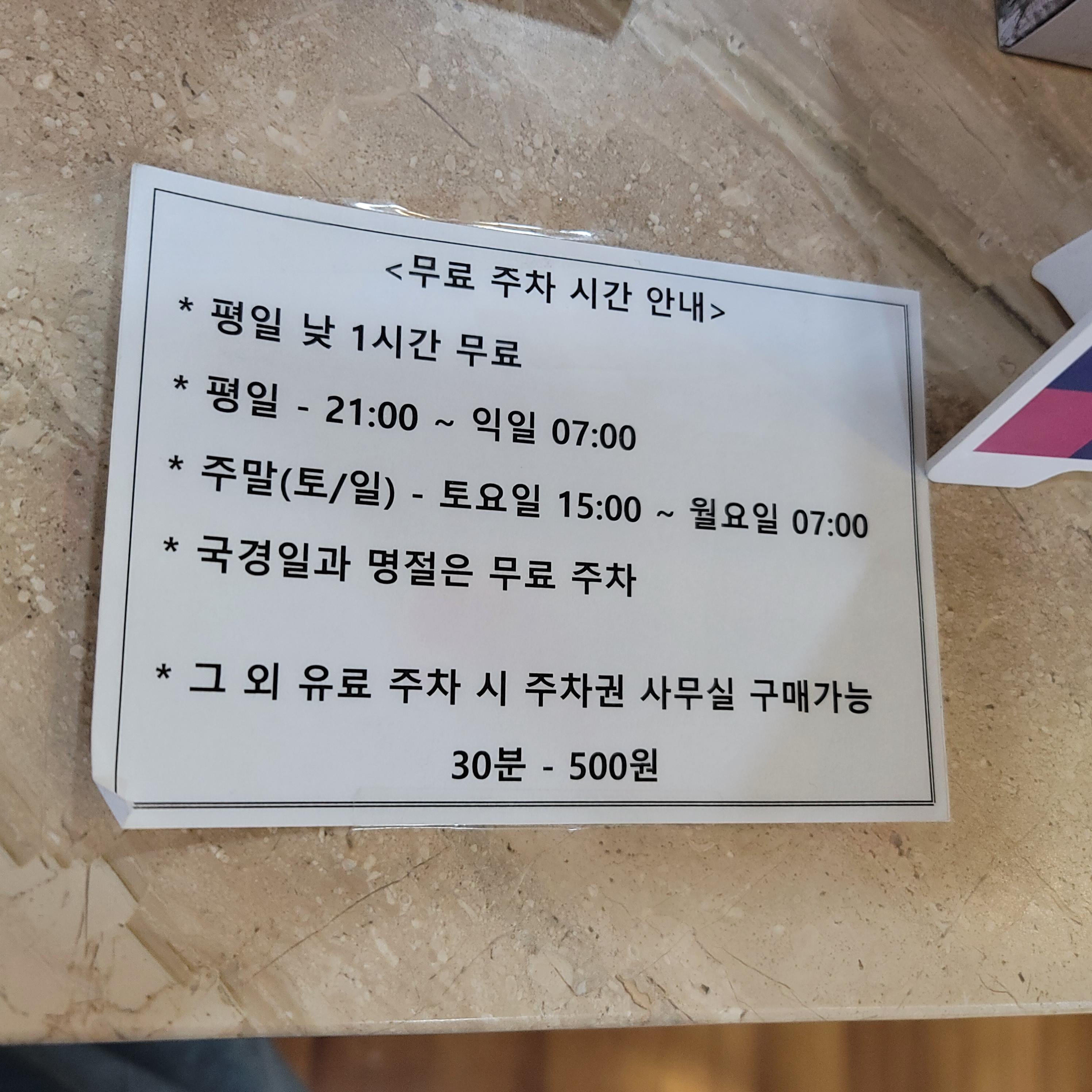 주차요금은 아래 사진 참고하시기 바랍니다.