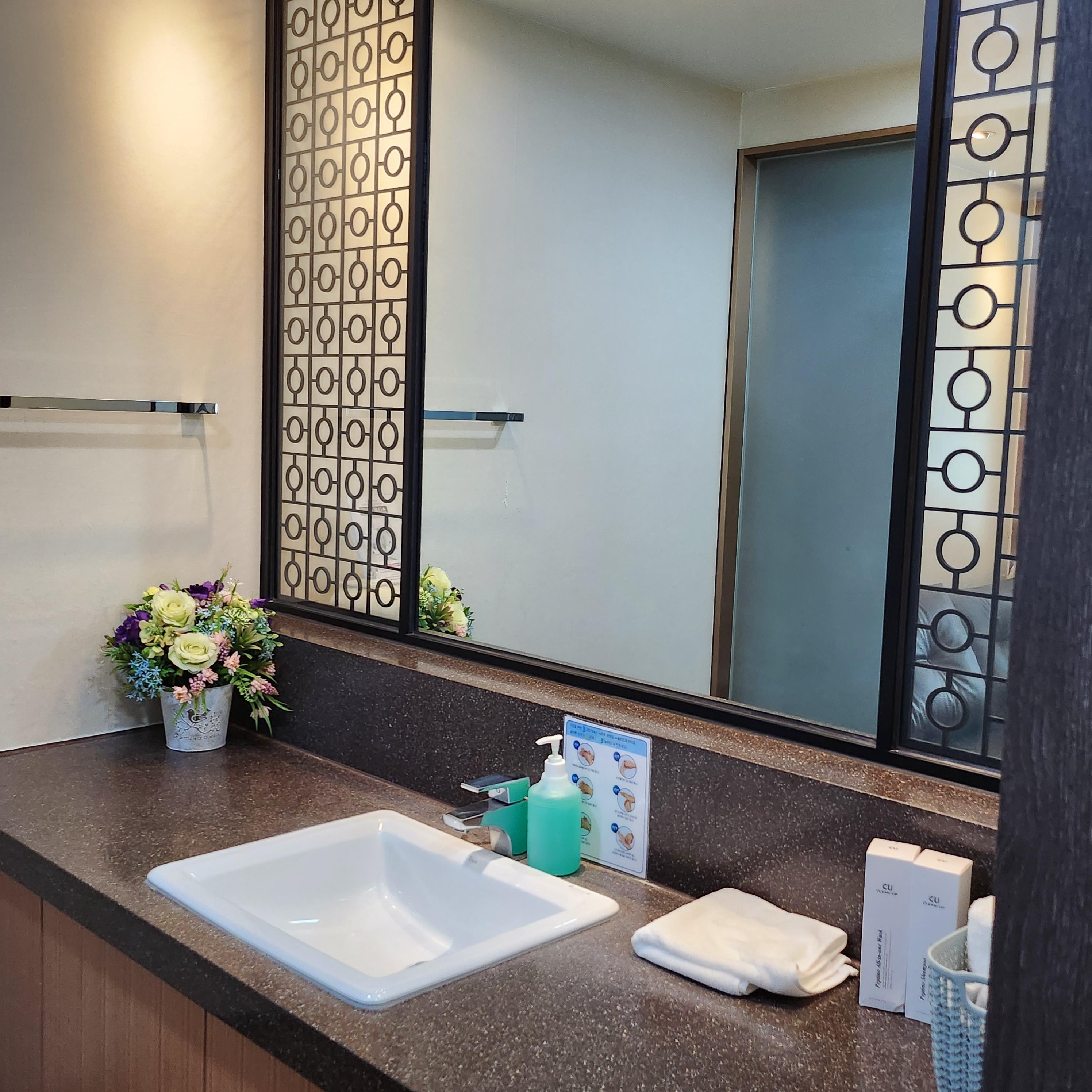 다만 저는 넓은 방에 비해 손을 닦는 공간의 세면대 높이가 너무 낮아서 저는 좀 불편했습니다.