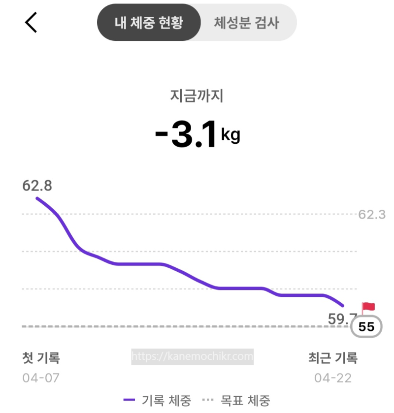 처음 살 빠지는 속도에 비하면 조금 더디긴 하지만 일주일에 대략 1kg 내외로 꾸준히 감소하고 있습니다