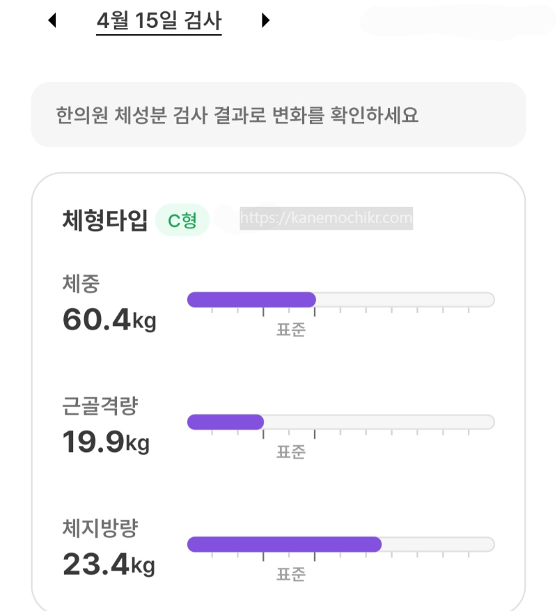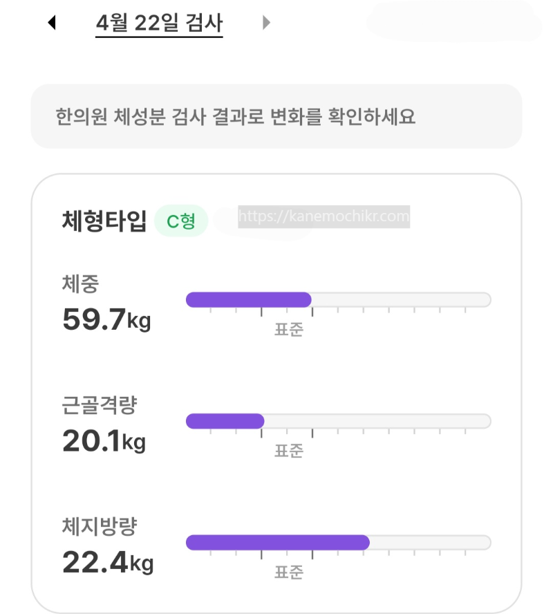 체지방도 23.4에서 22.4로 일주일 만에 많이 줄었습니다!