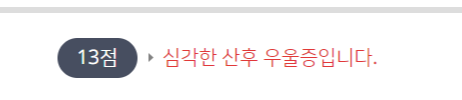 13점 이상부터는 심각한 산후 우울증이라고 보시면 됩니다.