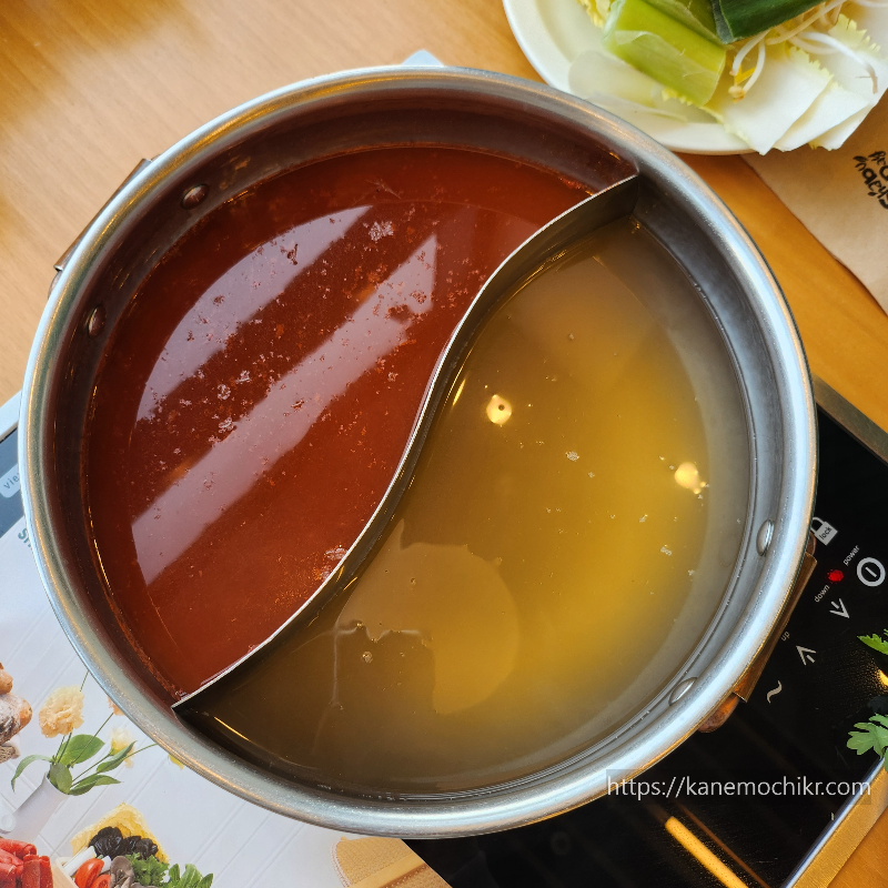 자리에 앉으면 육수 두 가지를 선택하라고 합니다