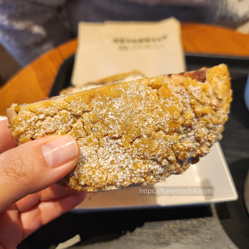 크림치즈와 달기쨈의 조화는 좋은데 빵도 두툼한데 안에 고구마까지 들어가서 저는 먹는 내내 목이 좀 막히는 느낌이었어요 개인적으로 고구마가 안 들어갔으면 더 좋았을 것 같아요 ㅋㅋ