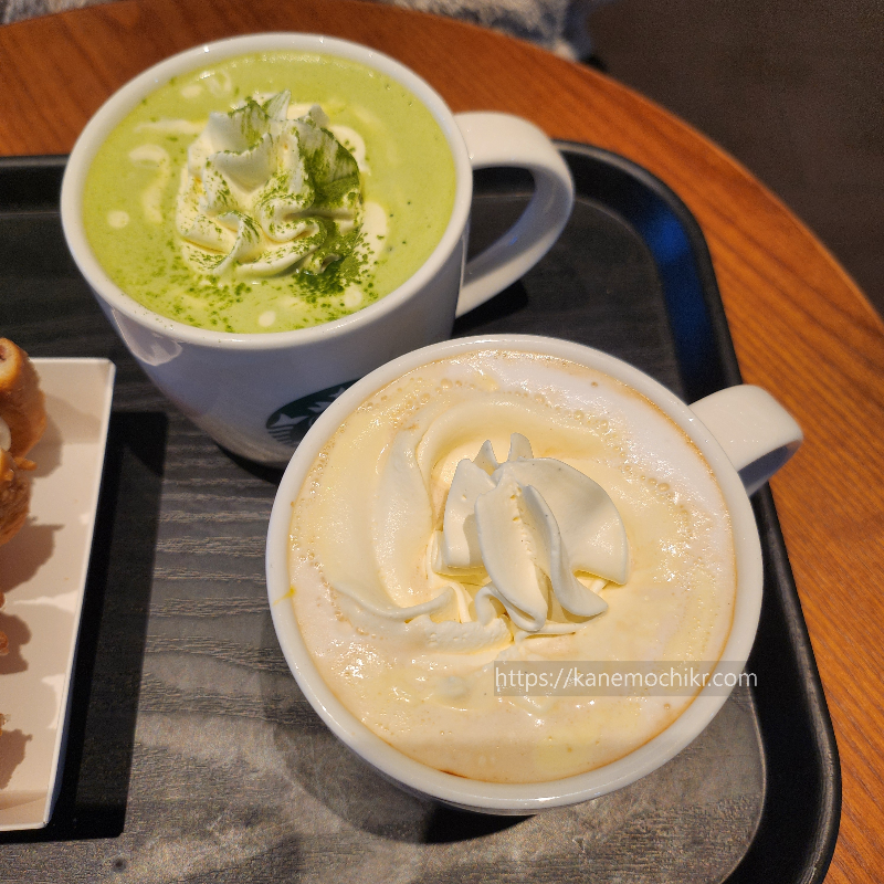 야무지게 주문한 슈크림라떼와 말차라떼