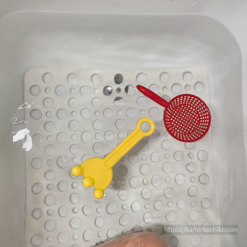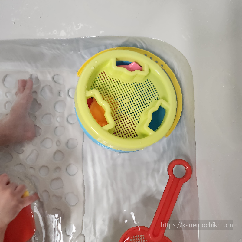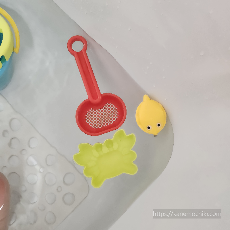 물놀이가 끝나면 알아서 욕조에 깔린 매트를 본인이 직접 떼기도 하는데요