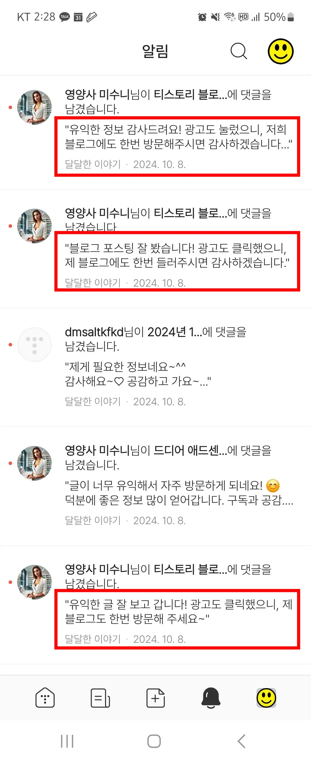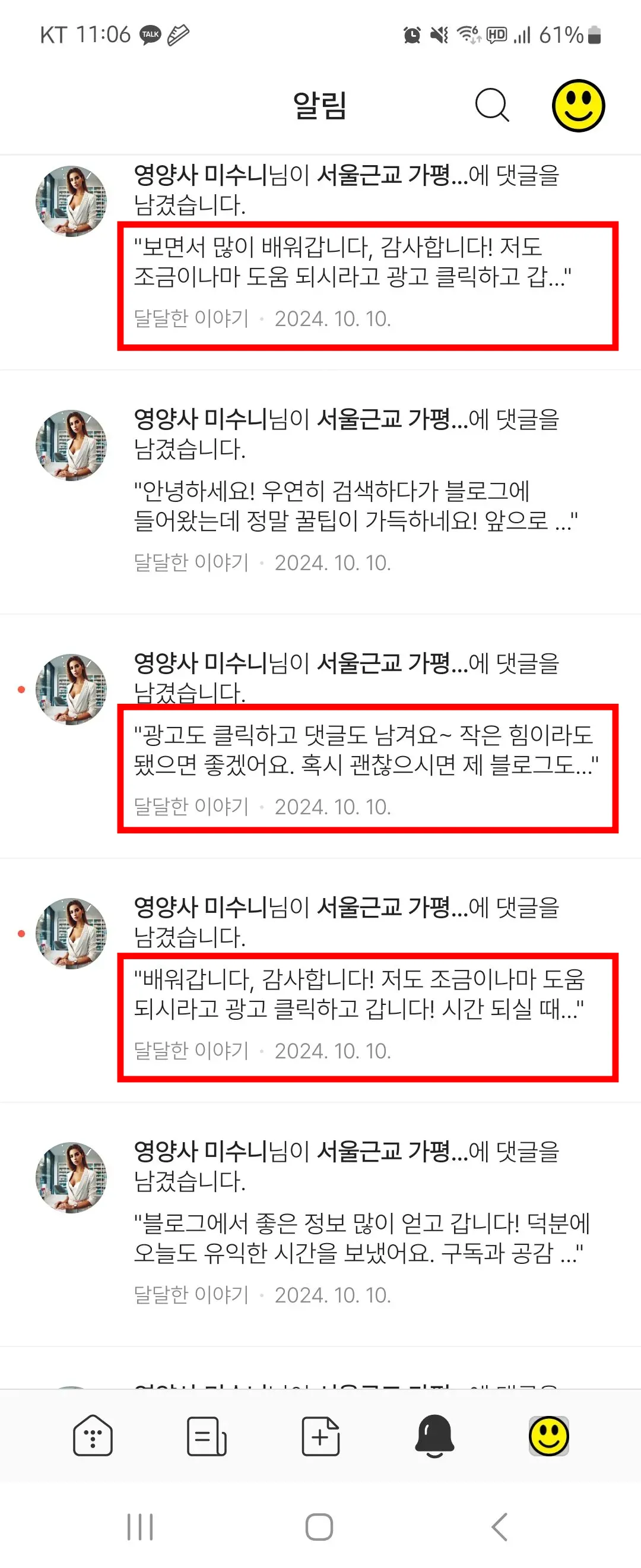 10월8일부터 제 블로그에 나타나기 시작했고 8일부터 9일 10일 이렇게 3일동안 블로그에 댓글에 자기 블로그에 와라 광고 클릭했으니 자기것도 클릭해달라 이런식의 댓글이 많았습니다