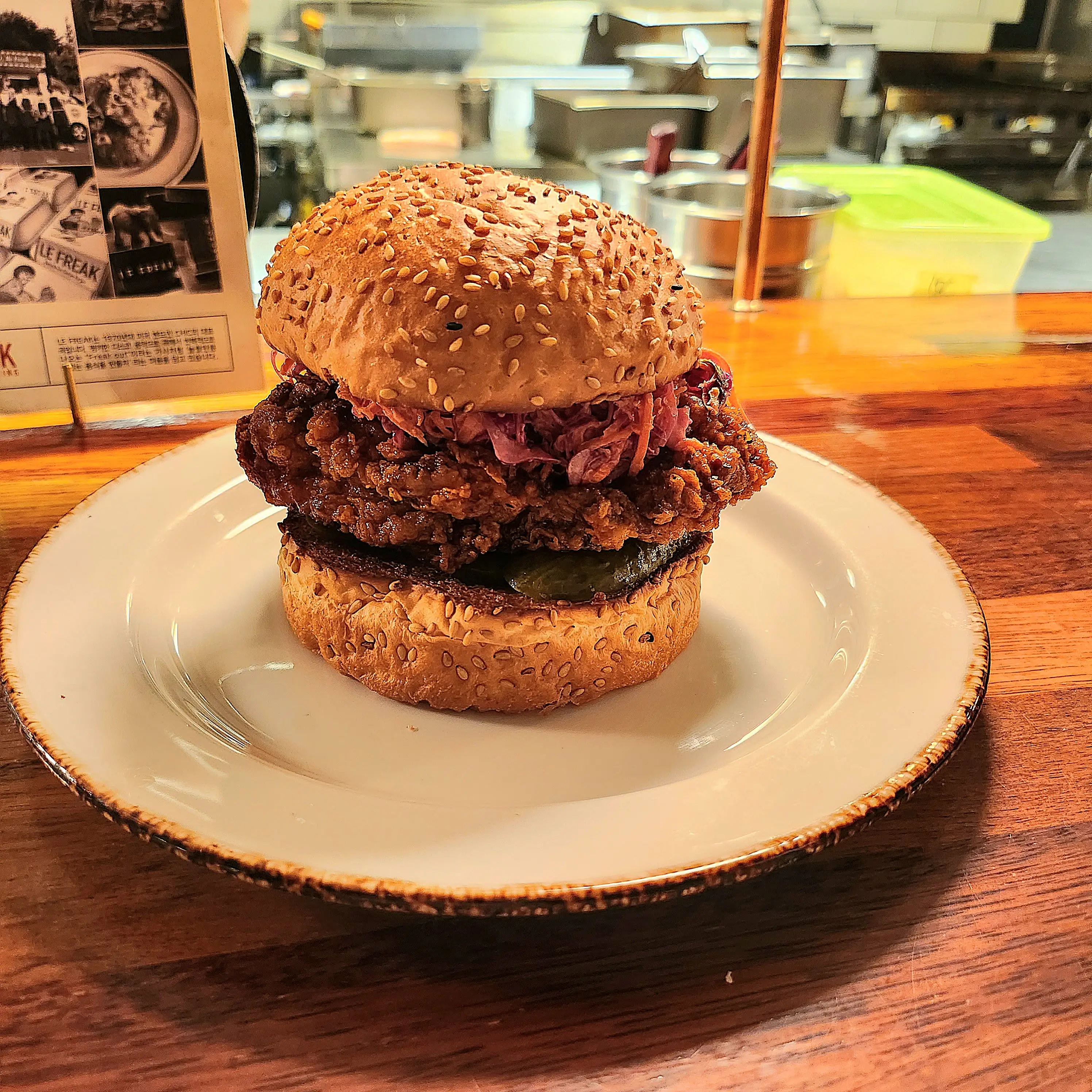 | 메뉴 및 가격 | 시그니처 내쉬빌 핫치킨 버거 12,800원 가지튀김 7,800원 머쉬룸 7,800원 알감자 7,300원 |
