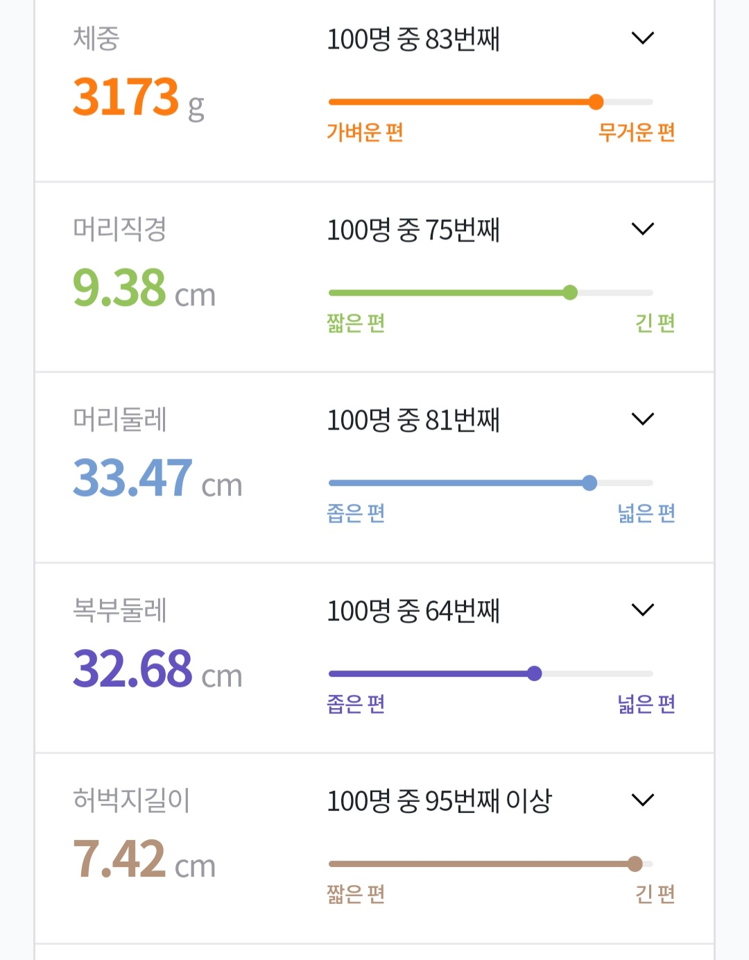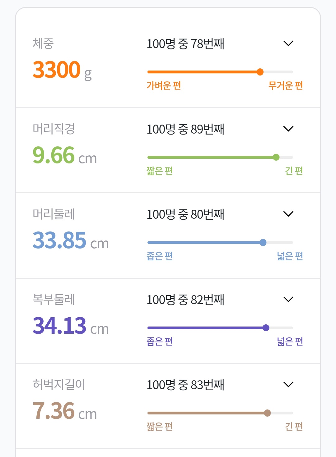 오차가 어느 정도 있을 것이라 예상은 했지만 생각보다 아이가 더 커서 놀랬습니다.