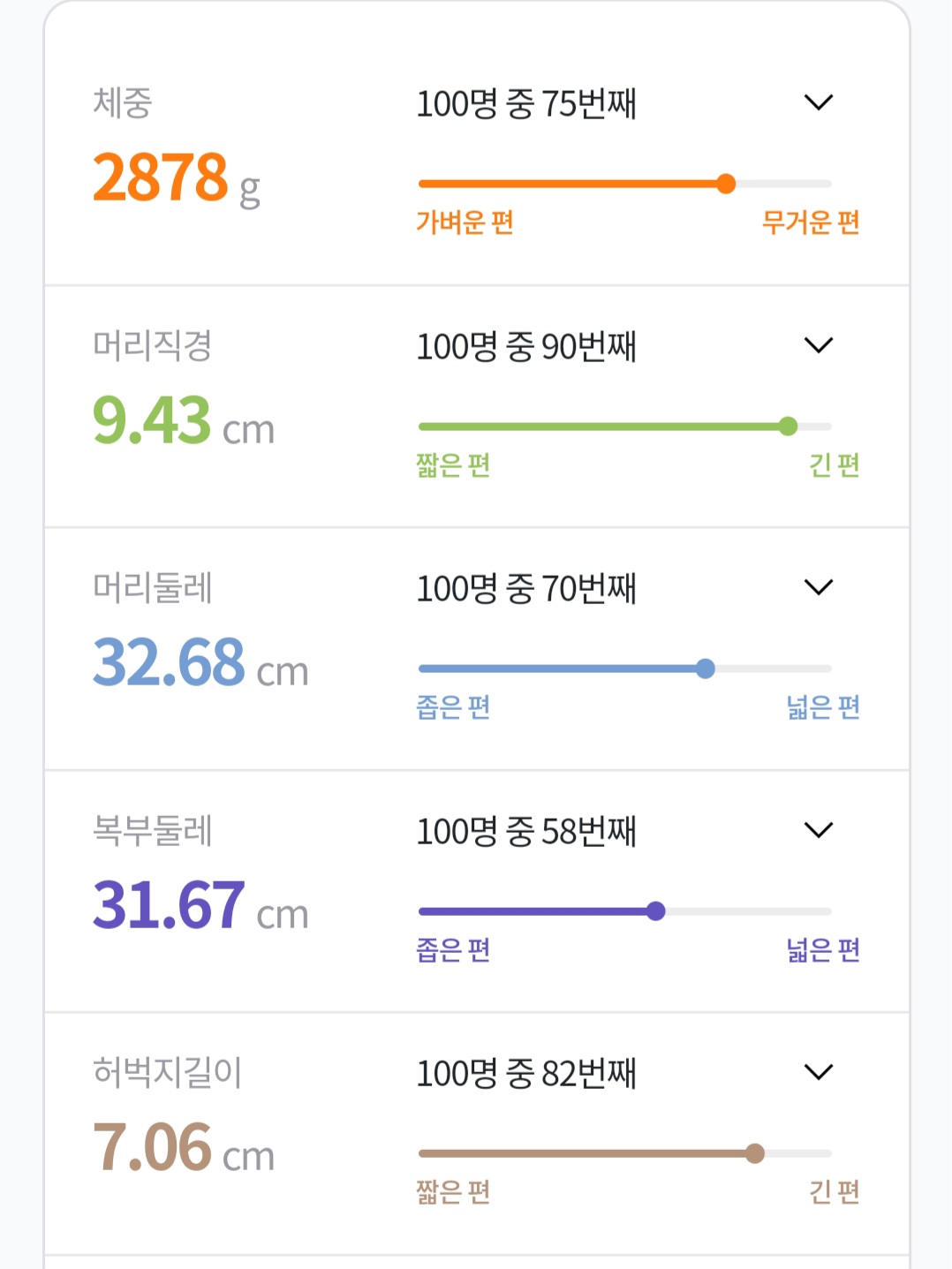 머리는 이제 32cm에 몸무게는 2.8킬로가 되었습니다.